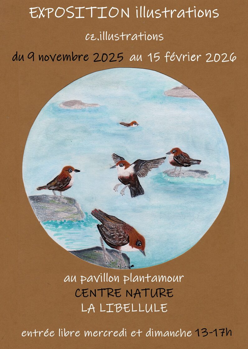 Merci au centre nature La Libellule qui m'offre un espace pour exposer mes dessins du 9 novembre 2025 au 15 février 2026 au Pavillon Plantamour.