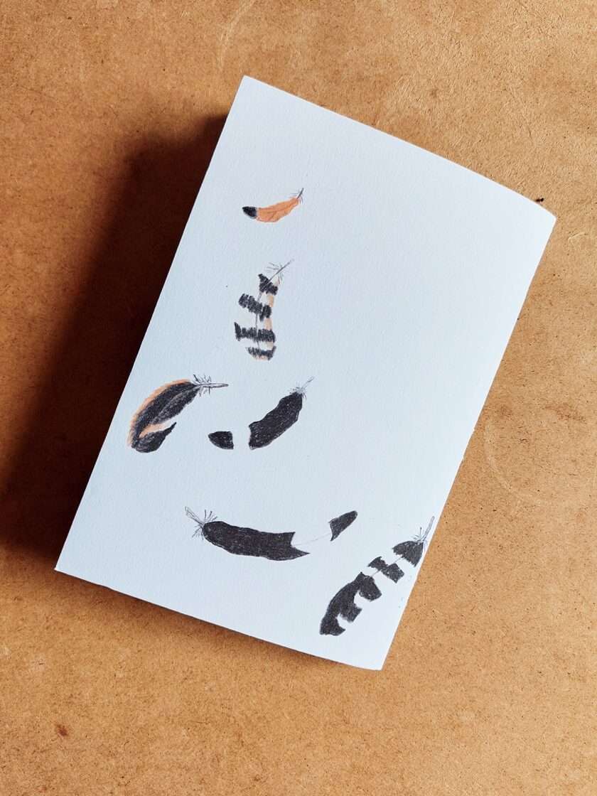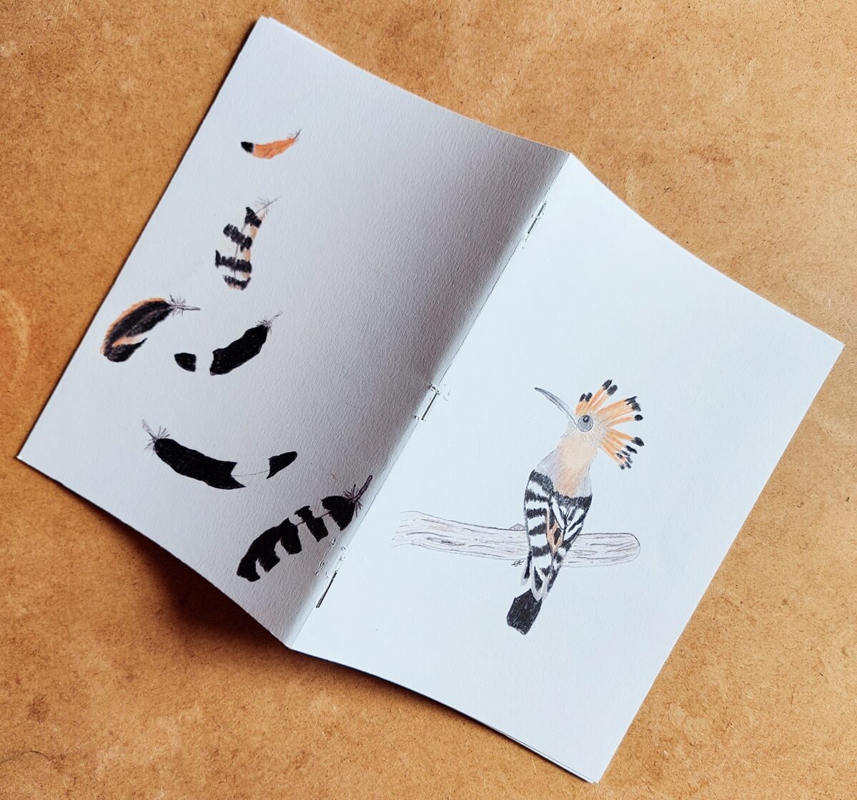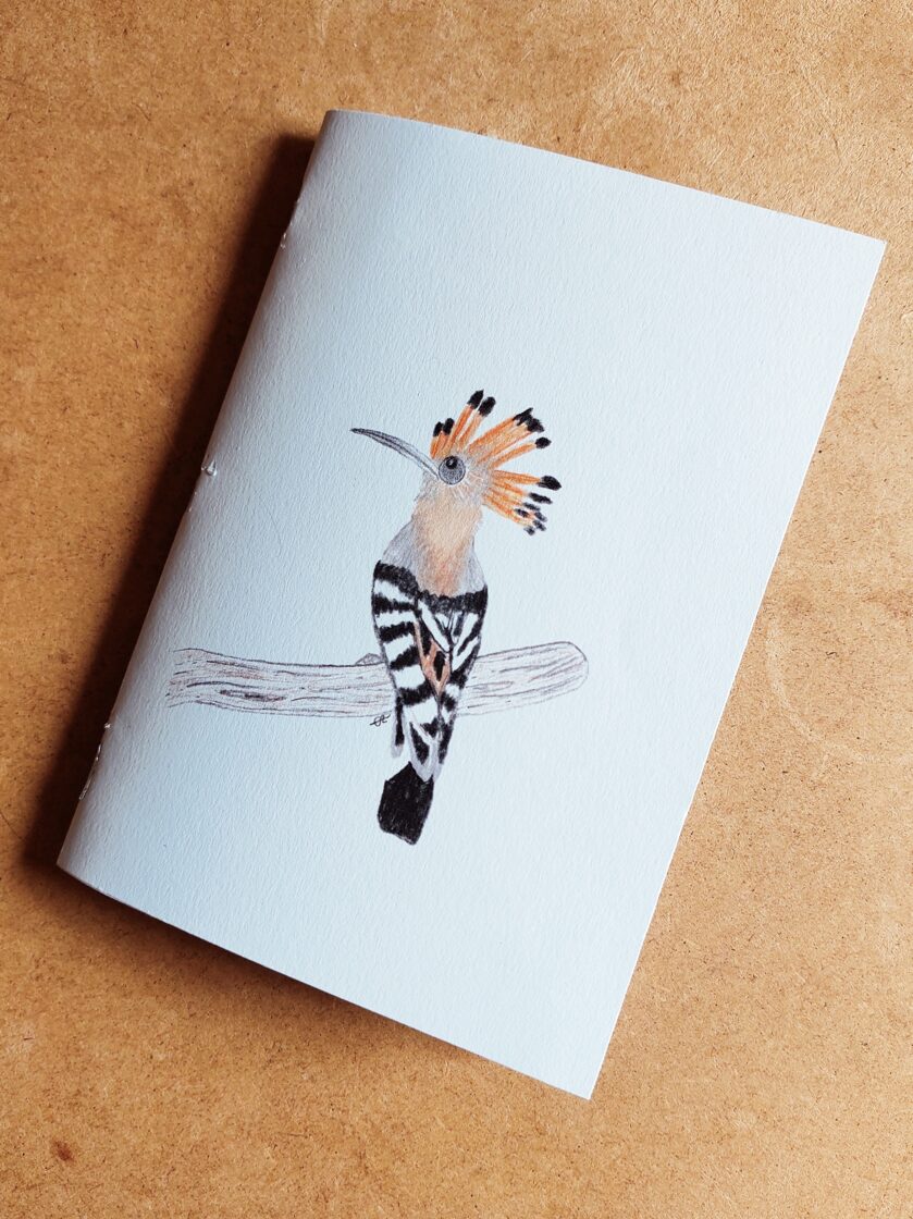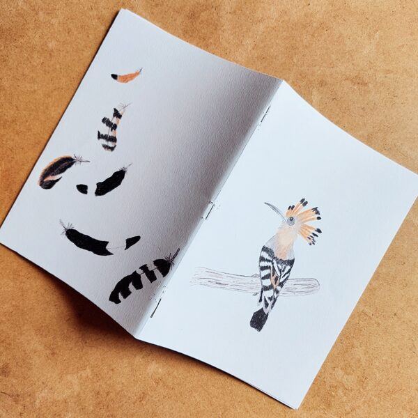 cahier format a5 22 pages- huppe fasciée recto et plumes verso - 2025