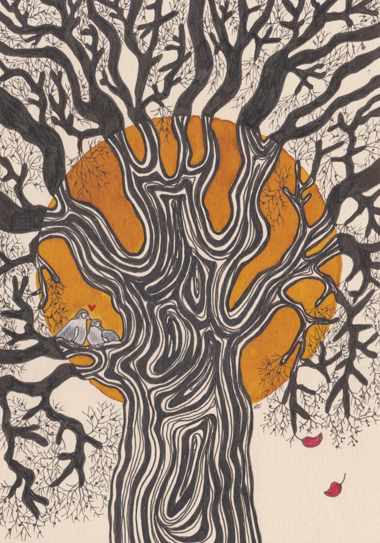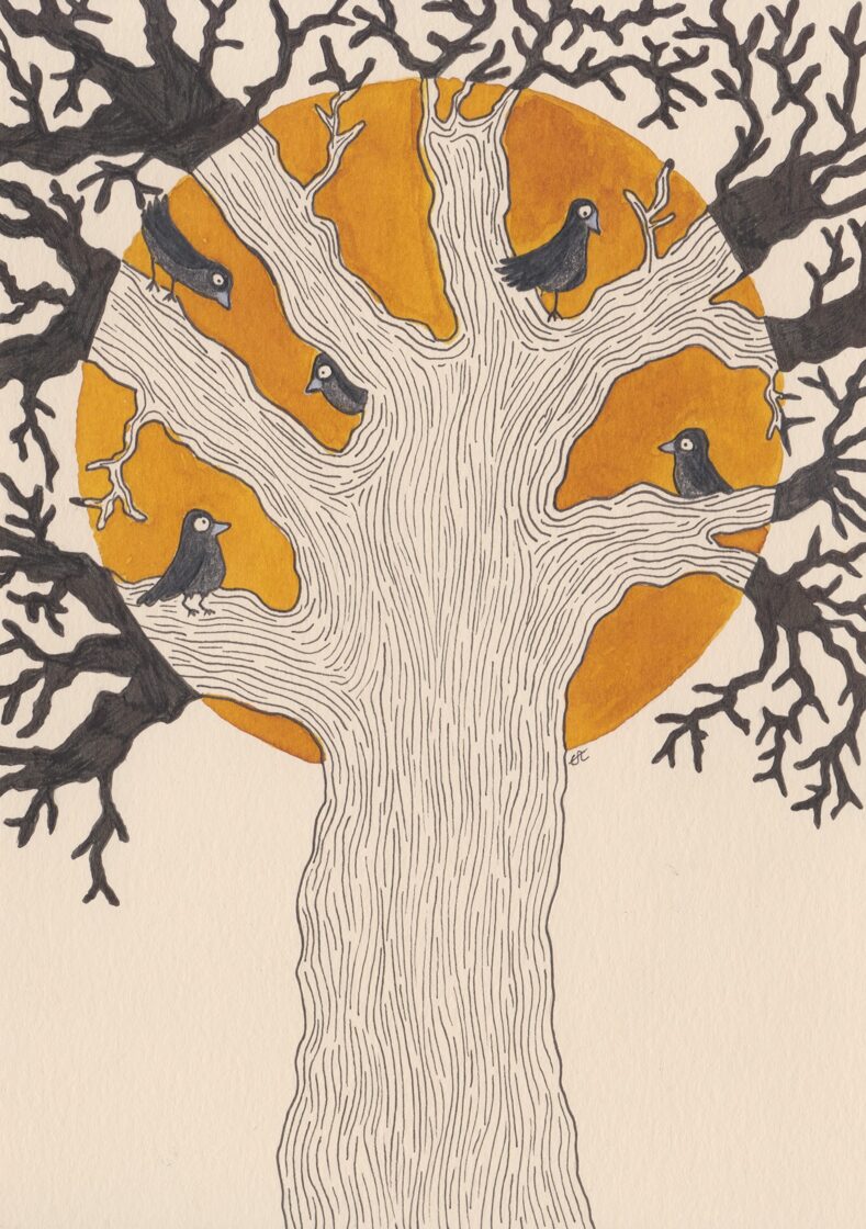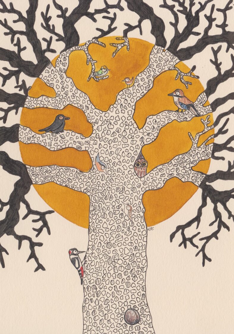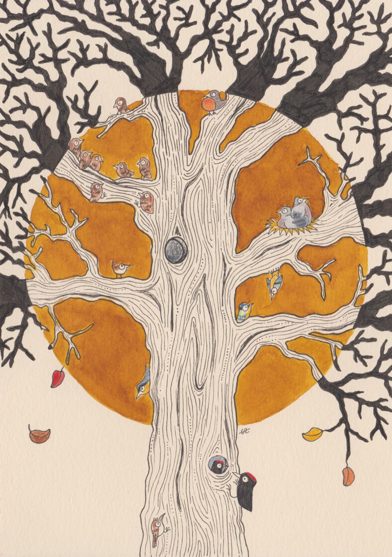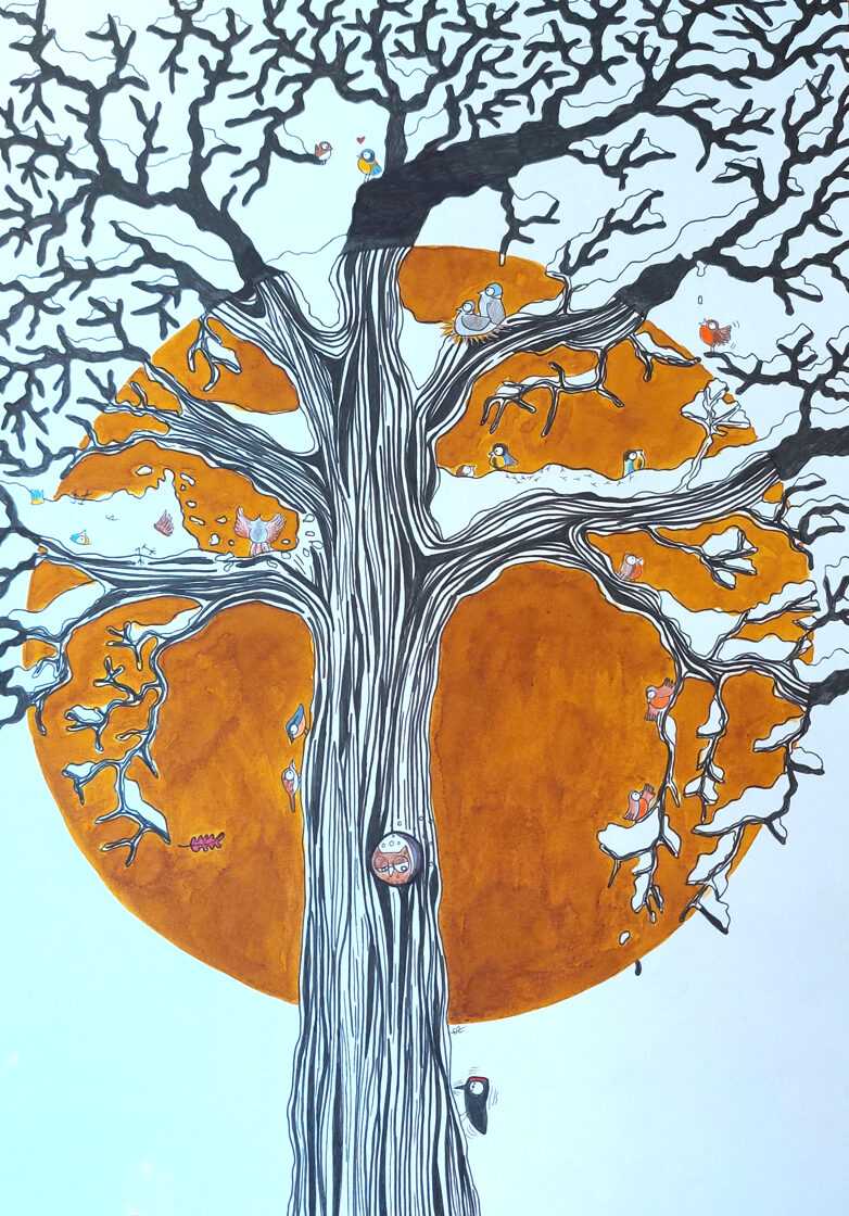 arbre à troglodyte mignon / encre, crayon et stylo / 14,8 x 21 cm / 2023 (vendu) -
