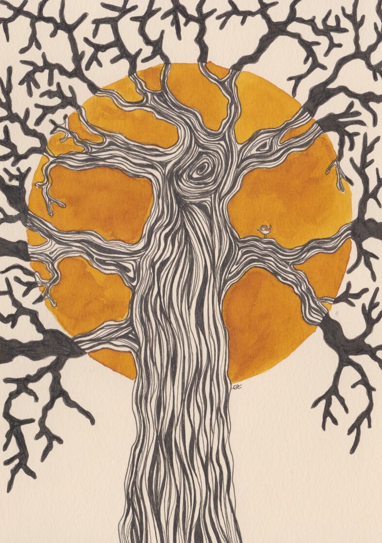 arbre à freu / encre, crayon et stylo / 14,8 x 21 cm / 2023 (vendu) -