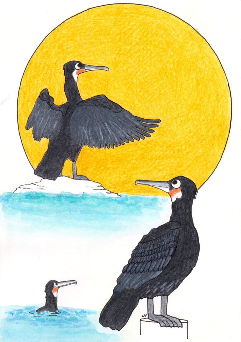 cormorans / crayon et stylo / 14,8 x 21 cm / 2024 -