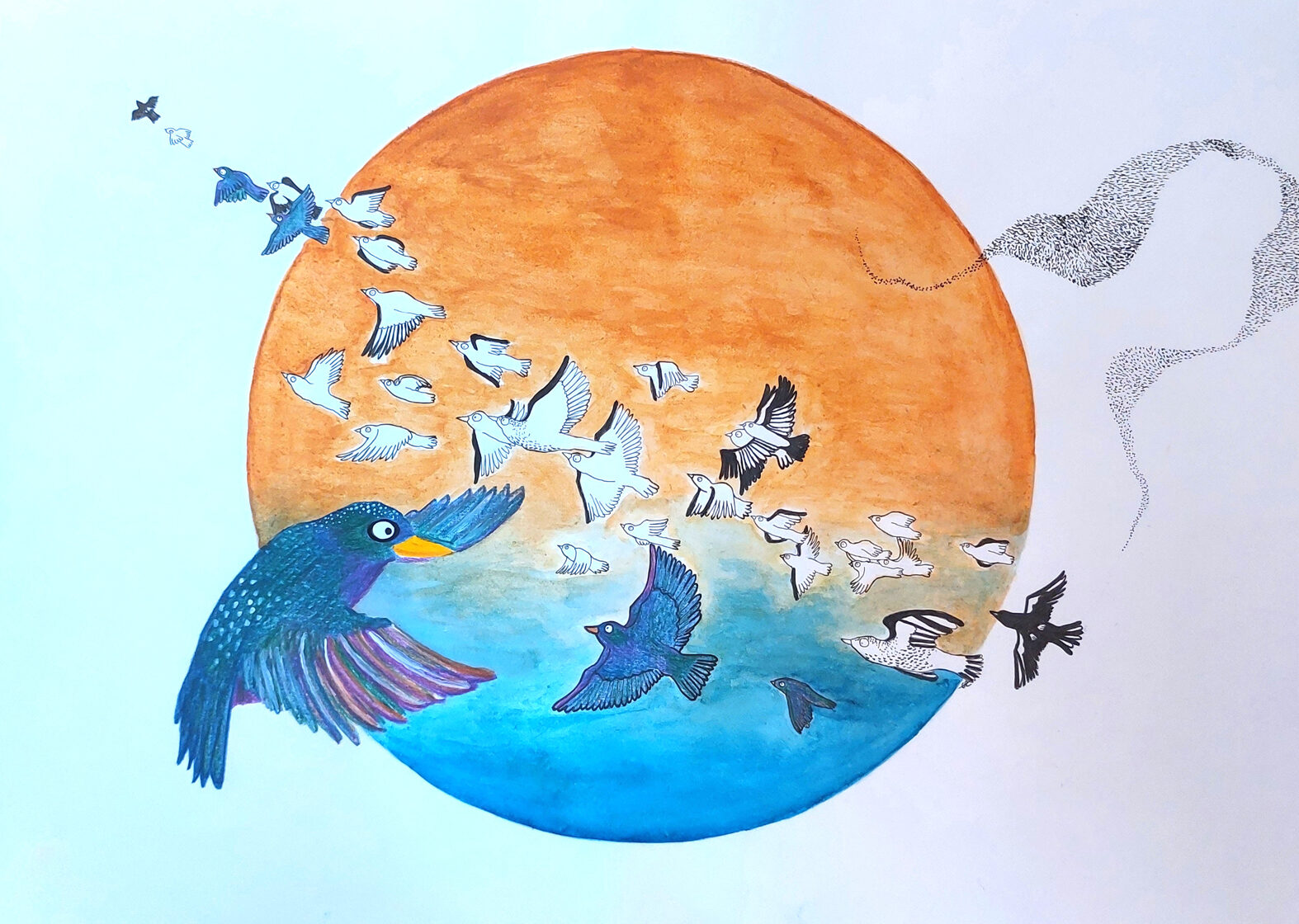bande d'étourneaux / aquarelle, crayon et stylo / 29,7 x 42 cm / 2023 -