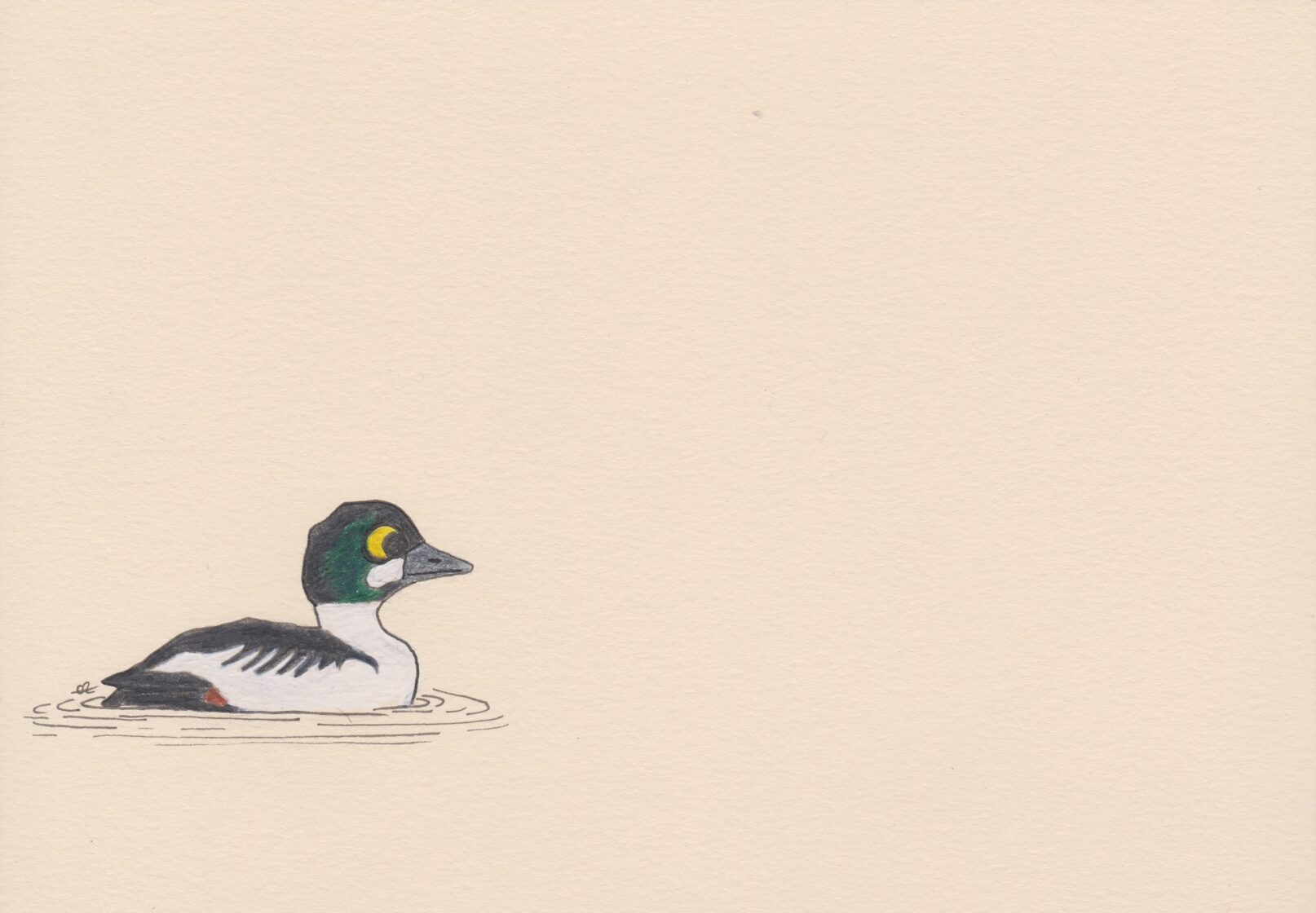 Garrot oeil d'or / crayon et stylo / 14,8 x 21 cm / 2023 (vendu) -