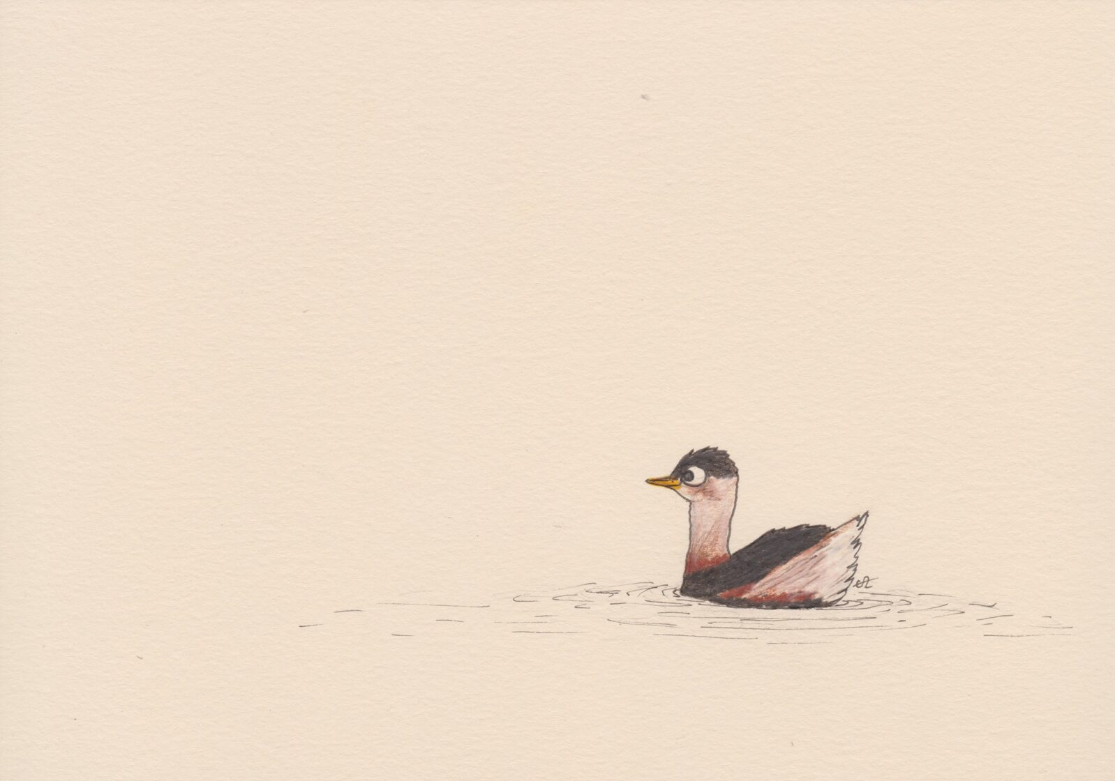 Grèbe castagneux / crayon et stylo / 14,8 x 21 cm / 2023 -
