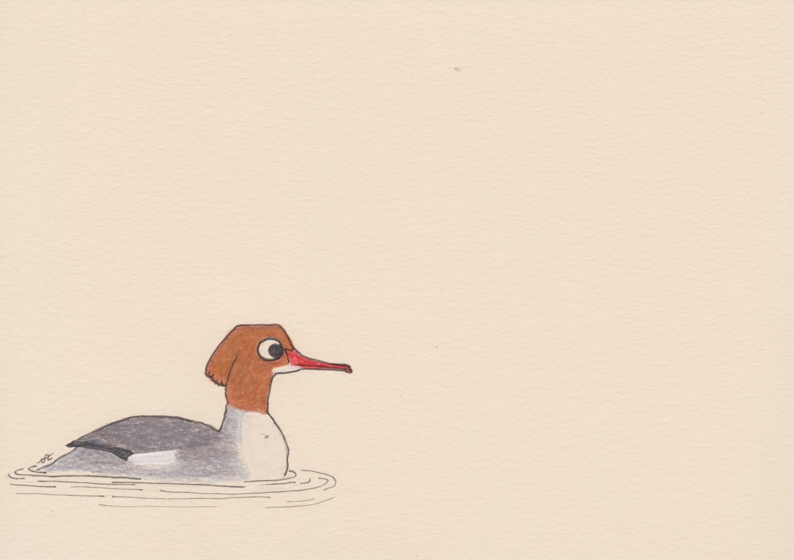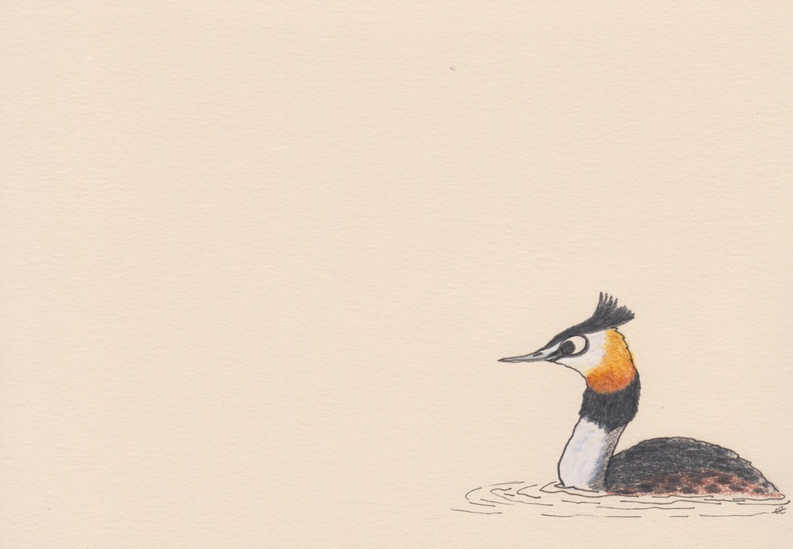Grèbe huppée / crayon et stylo / 14,8 x 21 cm / 2023 -