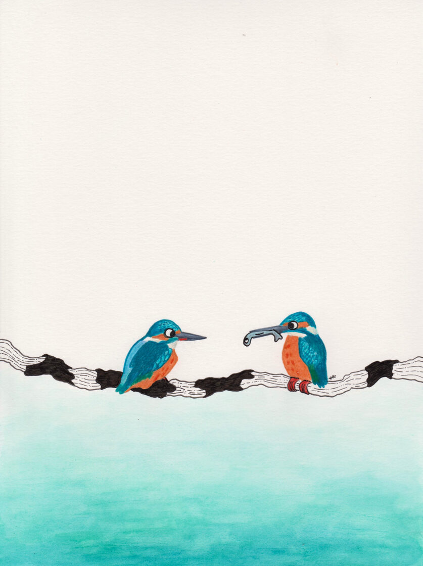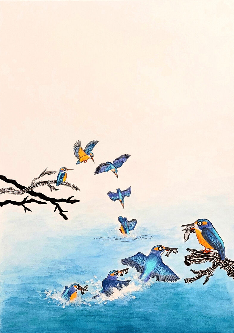 martin-pêcheur / aquarelle, crayon et stylo / 29,7 x 42 cm / 2024 -