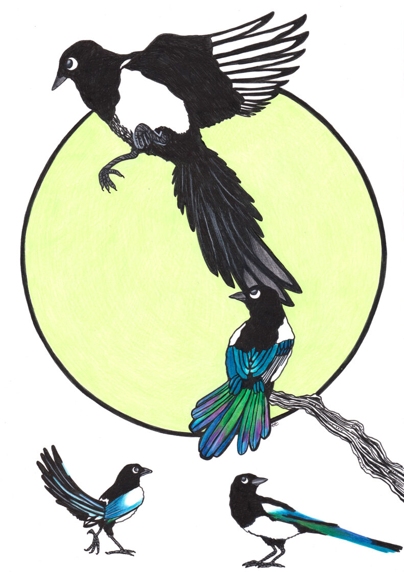 mouvements de pie / crayon et stylo / 21 x 29,7 cm / 2024 -