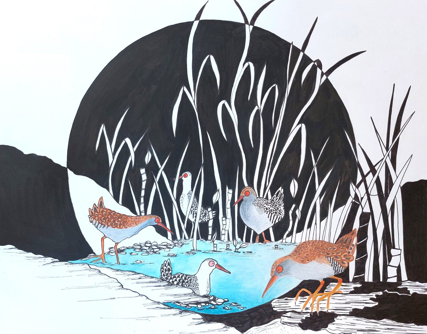 bande de sarcelles / crayon, encre et stylo / 29,7 x 42 cm / 2023 -