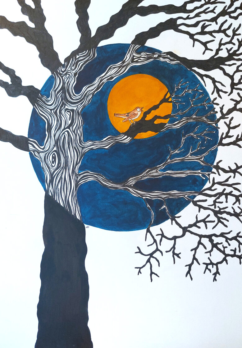 arbre à chat - rossignol / encre, stylo, aquarelle et crayon / 29,7 x 42 cm / 2022