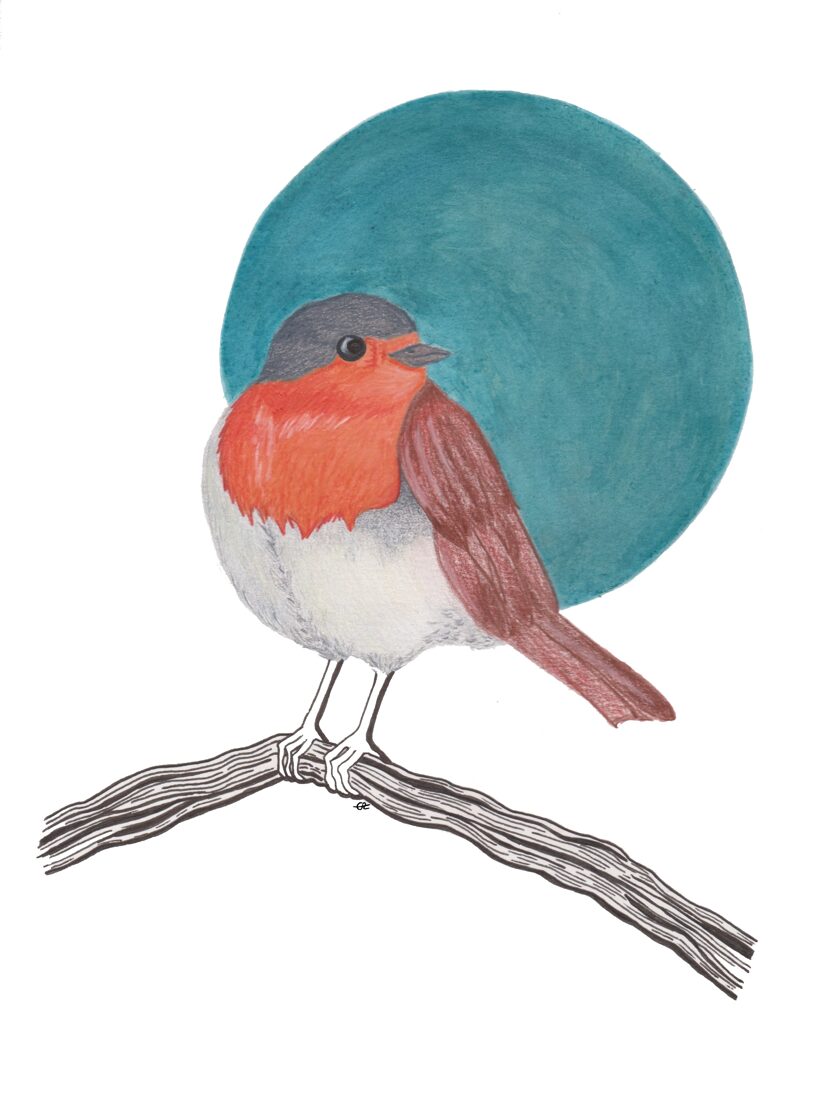 rougegorge / crayon, encre et stylo / 21 x 29,7 cm / 2023 -