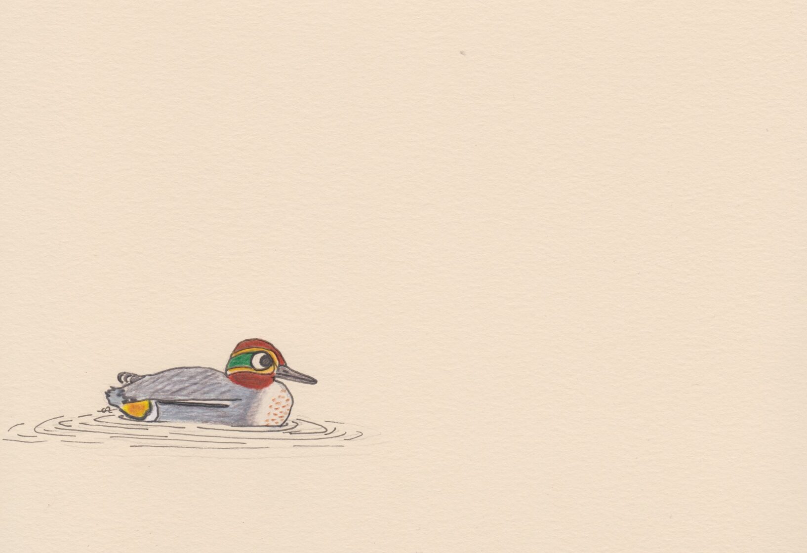 Sarcelle d'hiver / crayon et stylo / 14,8 x 21 cm / 2023 -