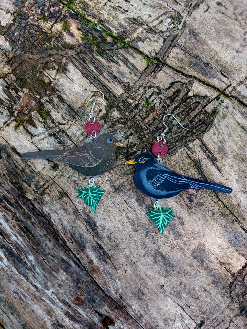 boucle d'oreilles XL - couple merle et lierre - plastique dingue et crayons - 2025 -