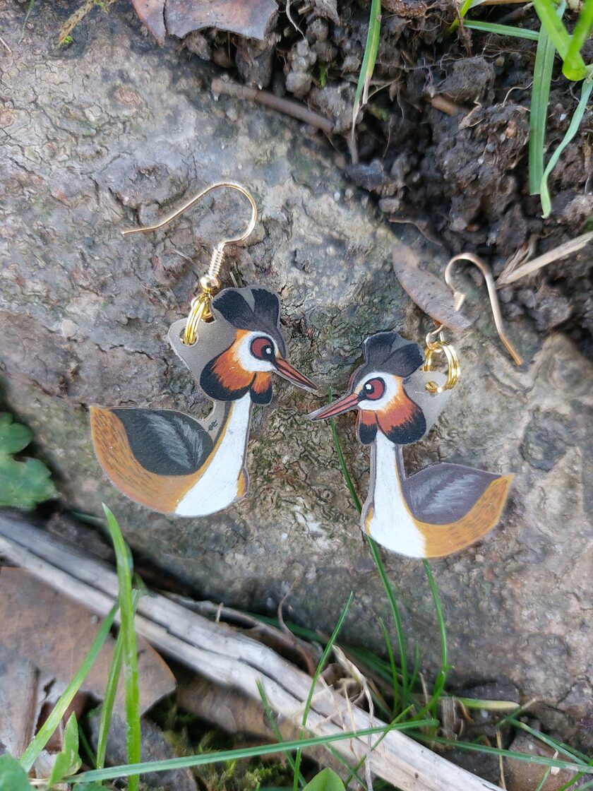 boucle d'oreilles S - grèbe huppé - plastique dingue et crayons- 2025 -