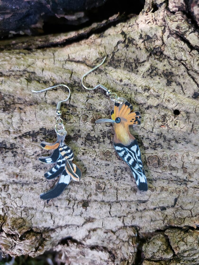 boucle d'oreilles M - huppe fasciée et plumes - plastique dingue et crayons - 2025 (vendu)