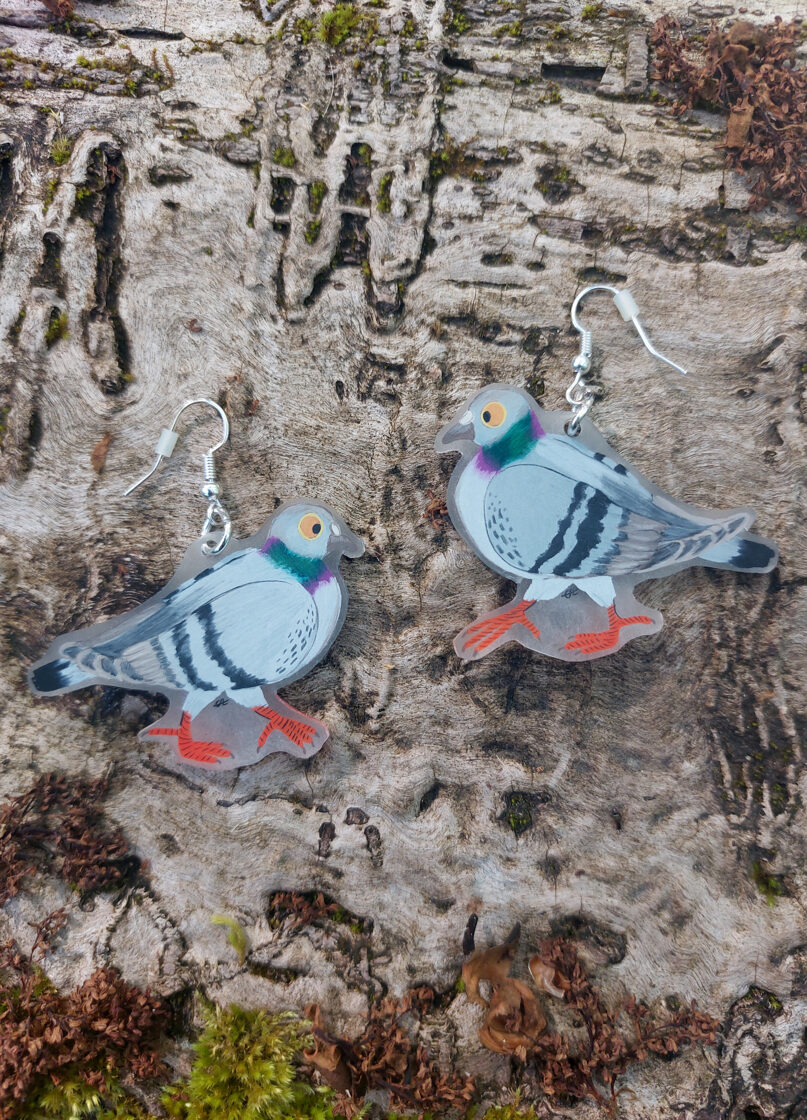boucle d'oreilles L - pigeon biset - plastique dingue - 2025 (vendu) -